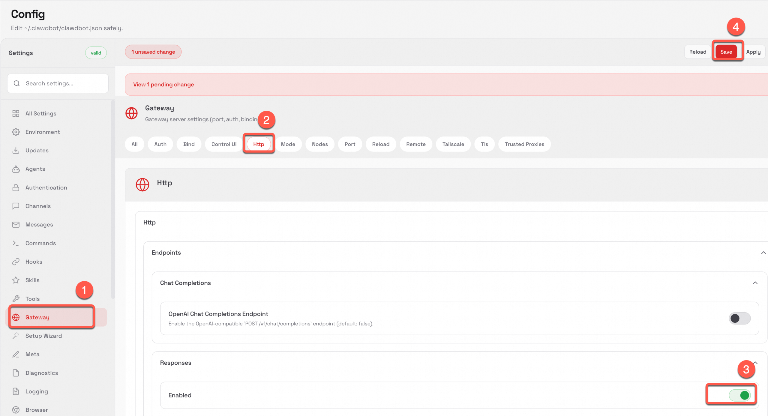 开启 ResponseAPI 访问,后续 AppFlow 会通过 API 访问 OpenClaw。