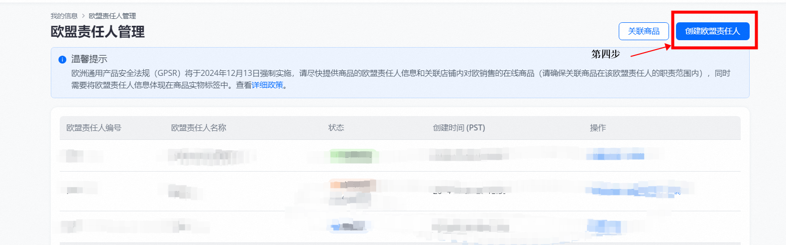 全托管商家:商家后台-店铺信息-基础信息管理-合规信息-欧盟责任人管理