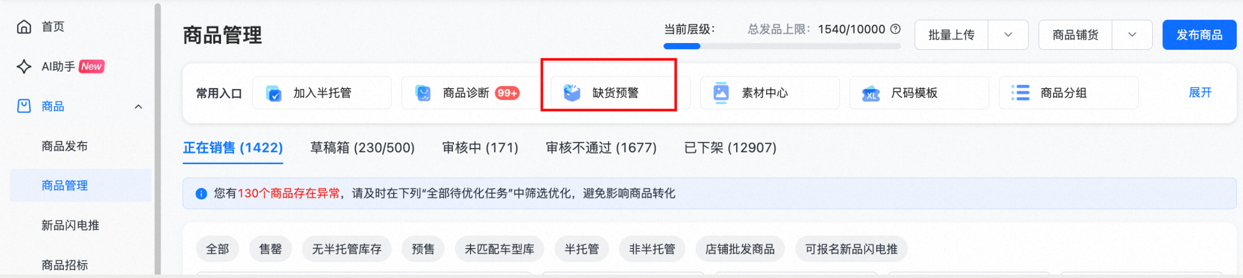 1)商品管理-常用入口处,如下图所示: