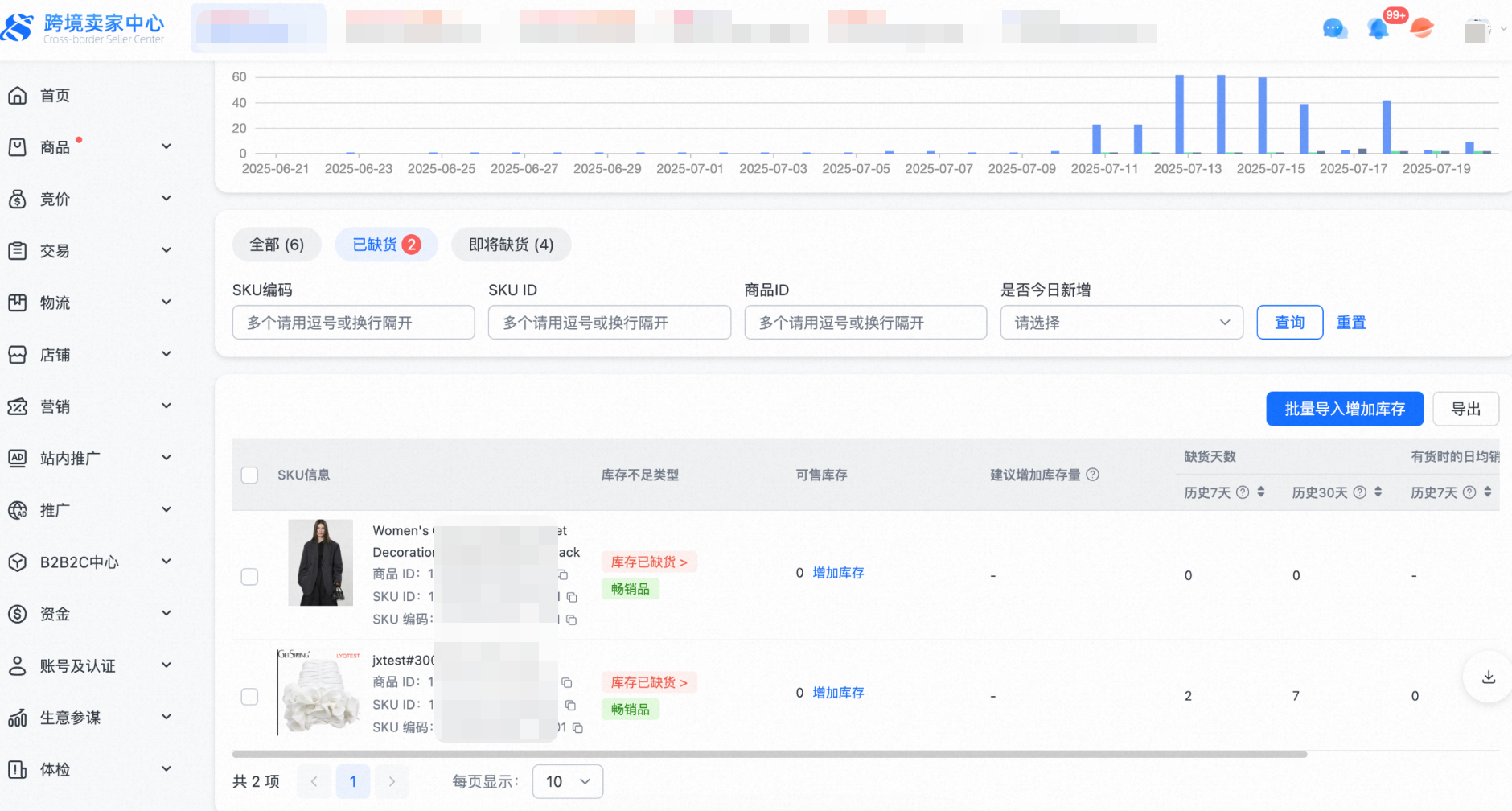 【3】支持查询“已缺货”和“即将缺货”的SKU概览和明细