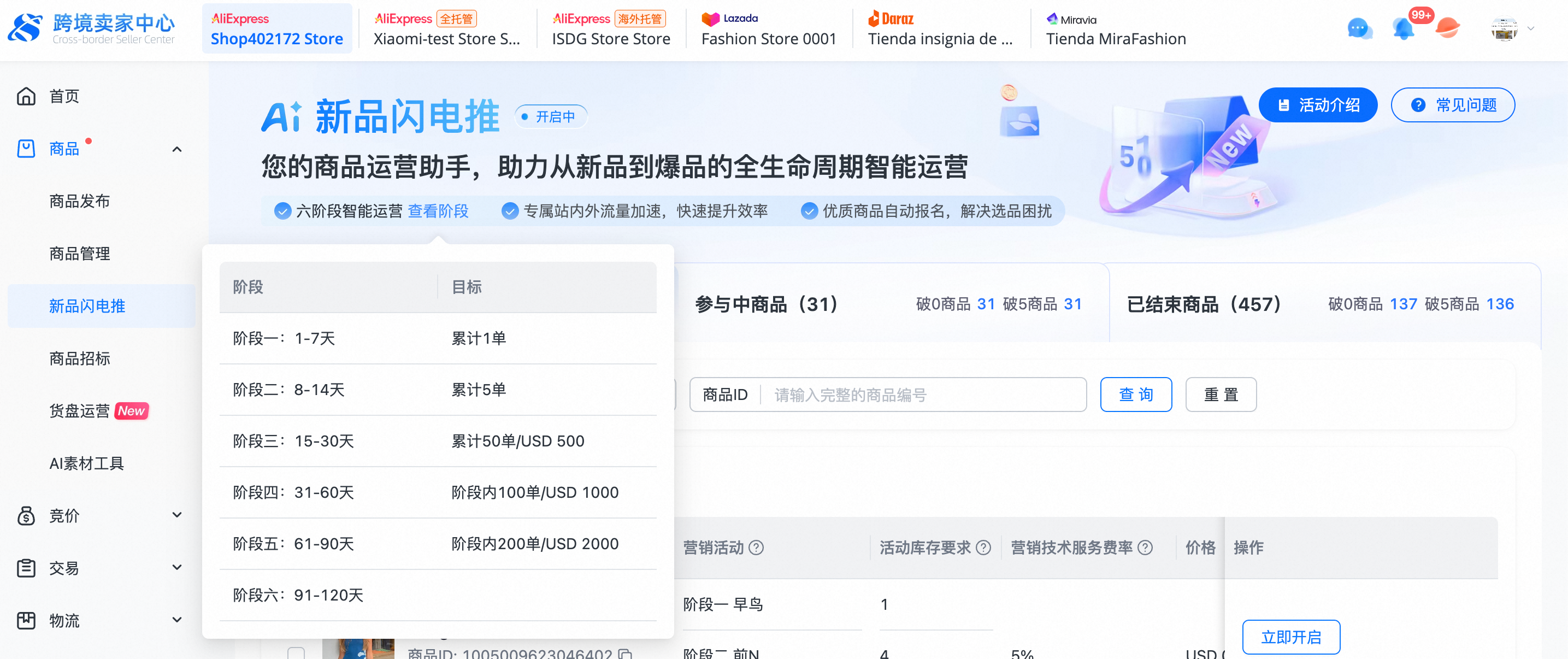 商家后台可以在新品闪电推banner查看分阶段定义和说明: