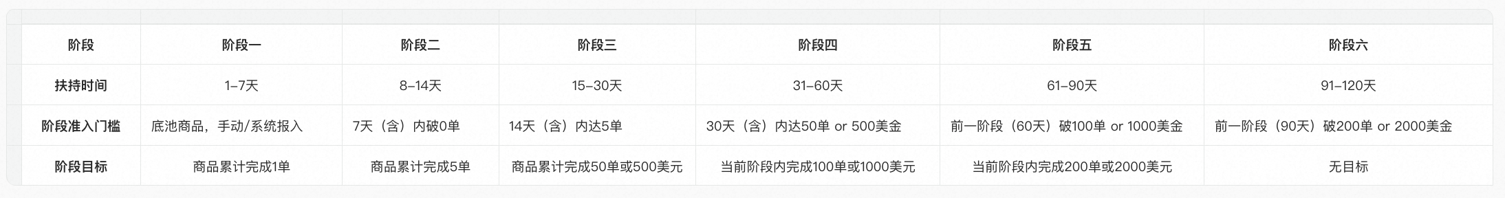 *因商品审核需要时间,所有阶段天数大概从在上架后3天算起