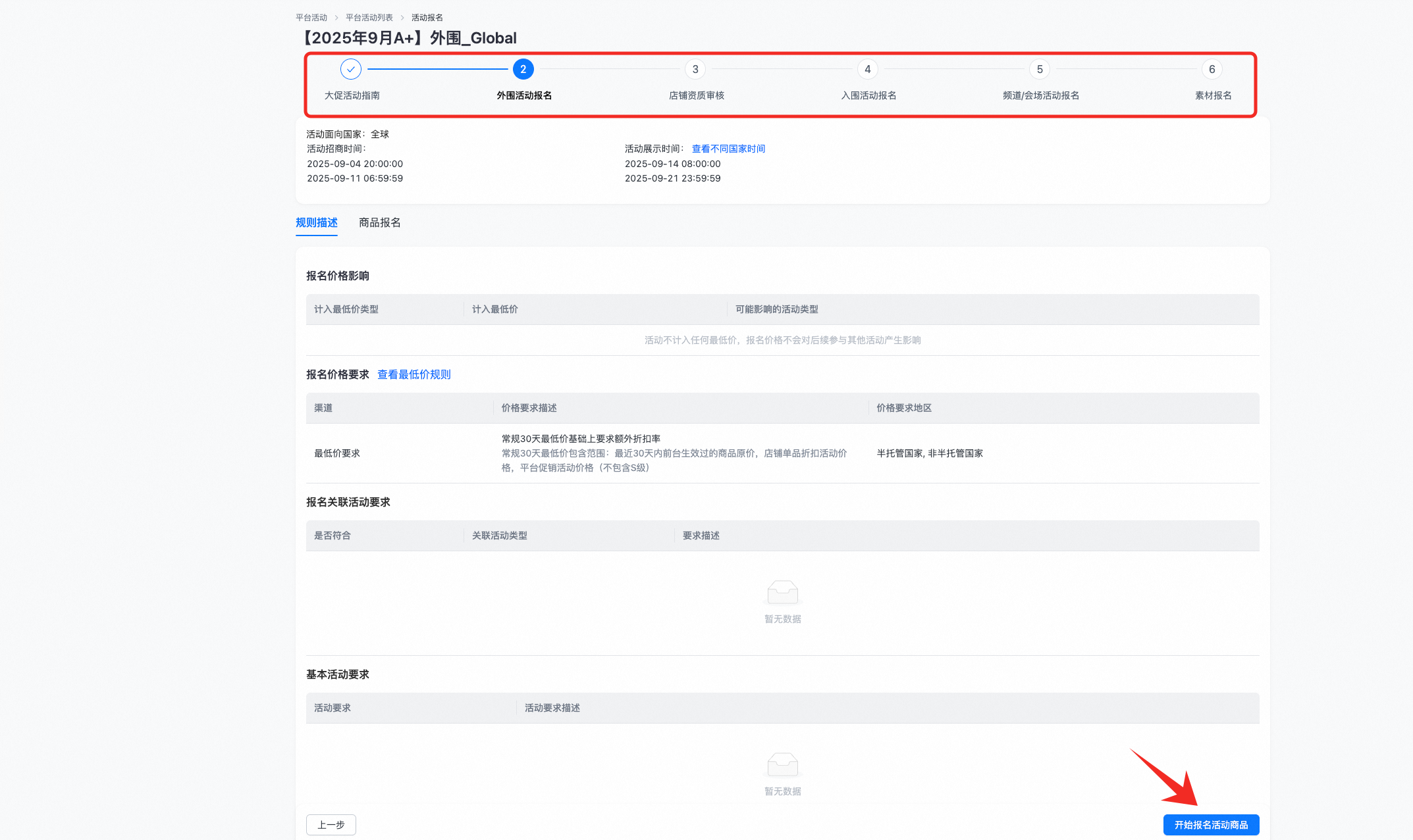 点击【开始报名活动商品】,即可开始报名外围活动