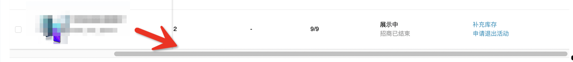 3)活动已开始无法补充,可能是由于未看到补充入口,请将鼠标往右滑动后找到【补充库存】入口;(如下图)
