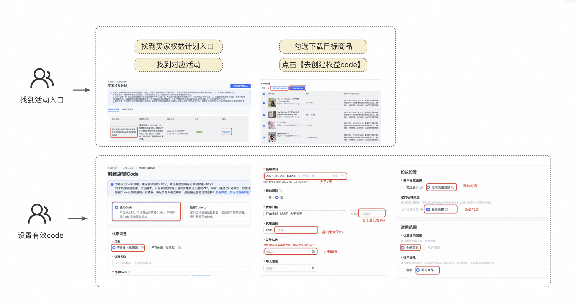 ⚠️最重要的:设置要勾选【联盟渠道】一定要做,不然网红拿不到code,咋推!!!!