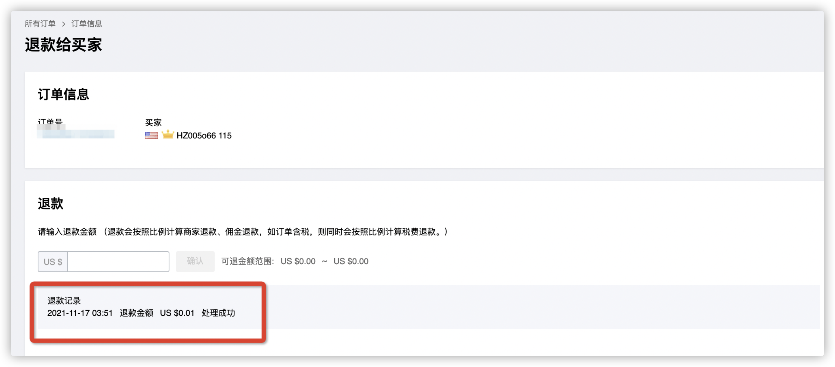 仅支持买家无法发纠纷的订单,且支付成功未超过365天(因支付渠道限制会无法退款成功);