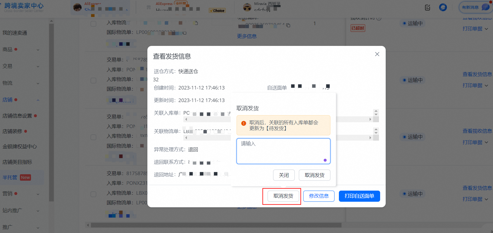 若要更换发货方式(揽收改为自寄/自送,或自寄/自送改为揽收),需先取消再重新组包发货