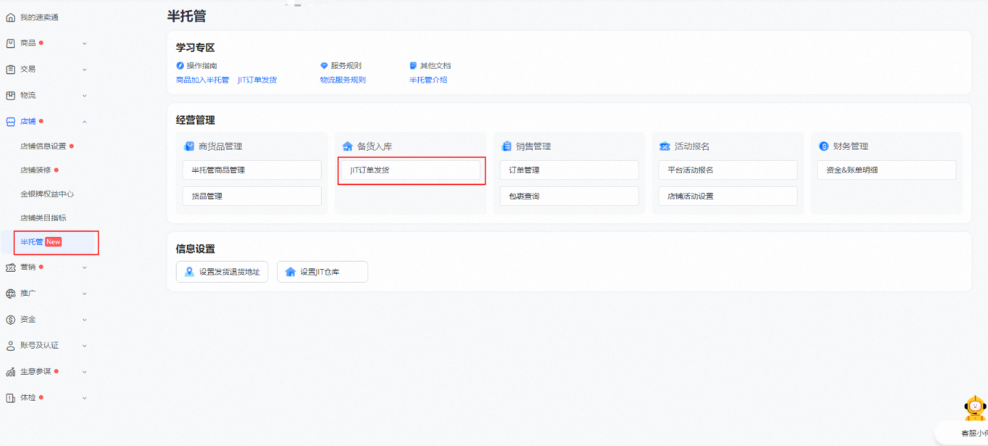 商家后台-【店铺】-【半托管】-【JIT订单发货】进入JIT订单发货界面