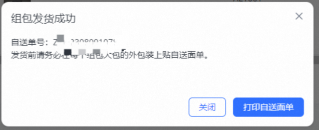 点击批量组包发货后: