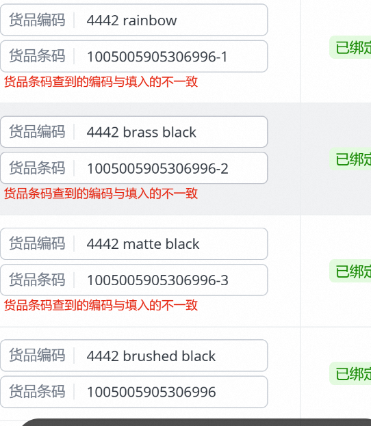 如已经用在国内优选仓/半托管其它商品的货品条码,需要将原来的解绑删除后,再配置到半托管商品中,或直接使用新条码信息。