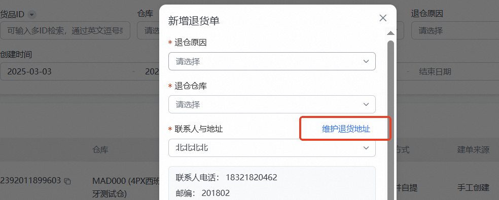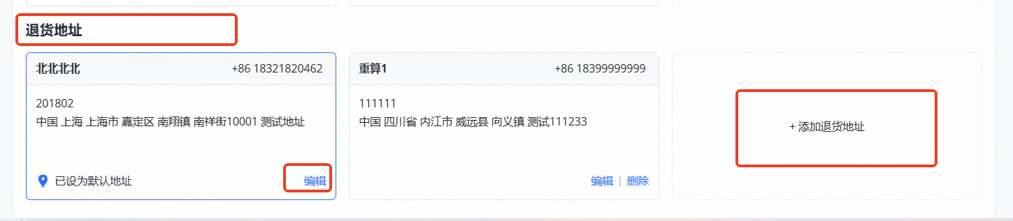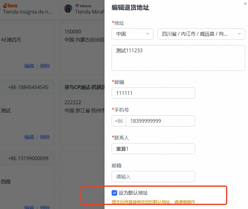 注意:地址修改后,需要设置为默认地址,后续退供单才会使用该地址!
