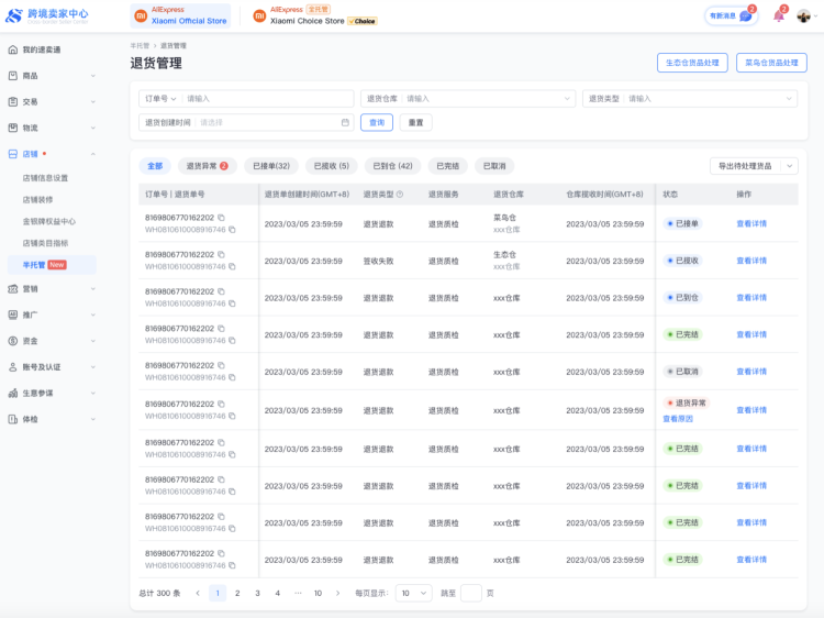 路径:【店铺】-【半托管】-【退货管理】