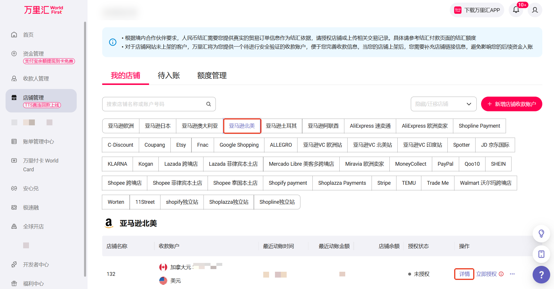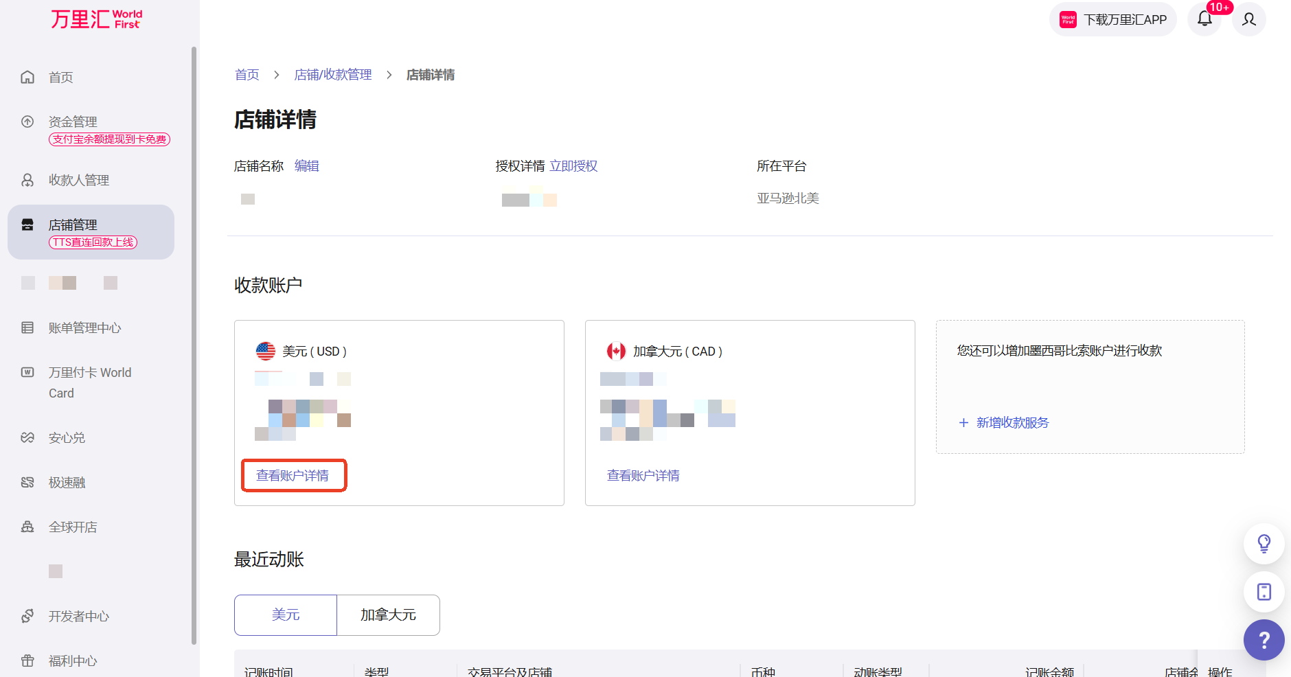 请登录万里汇(WorldFirst),查阅您的美元账号详情