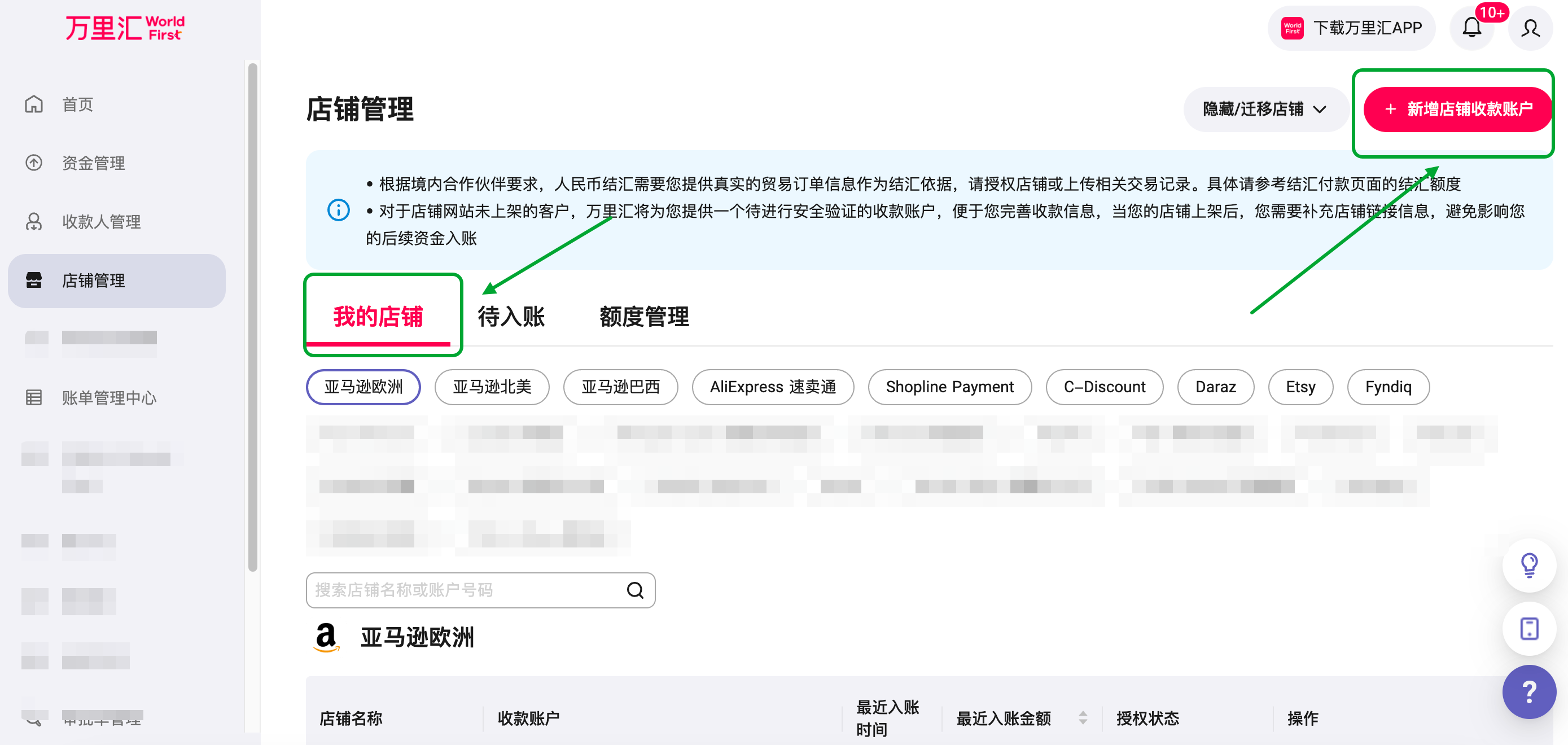 点击首页【店铺管理】-【我的店铺】-【新增店铺收款账户】
