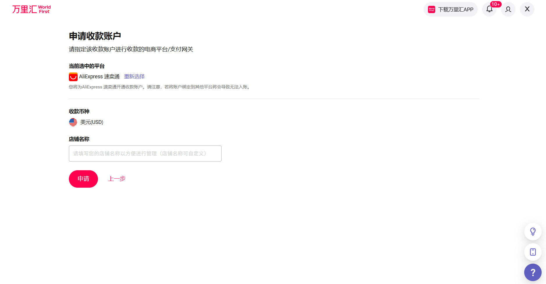 您可以进入万里汇(WorldFirst)官网,完成账号注册