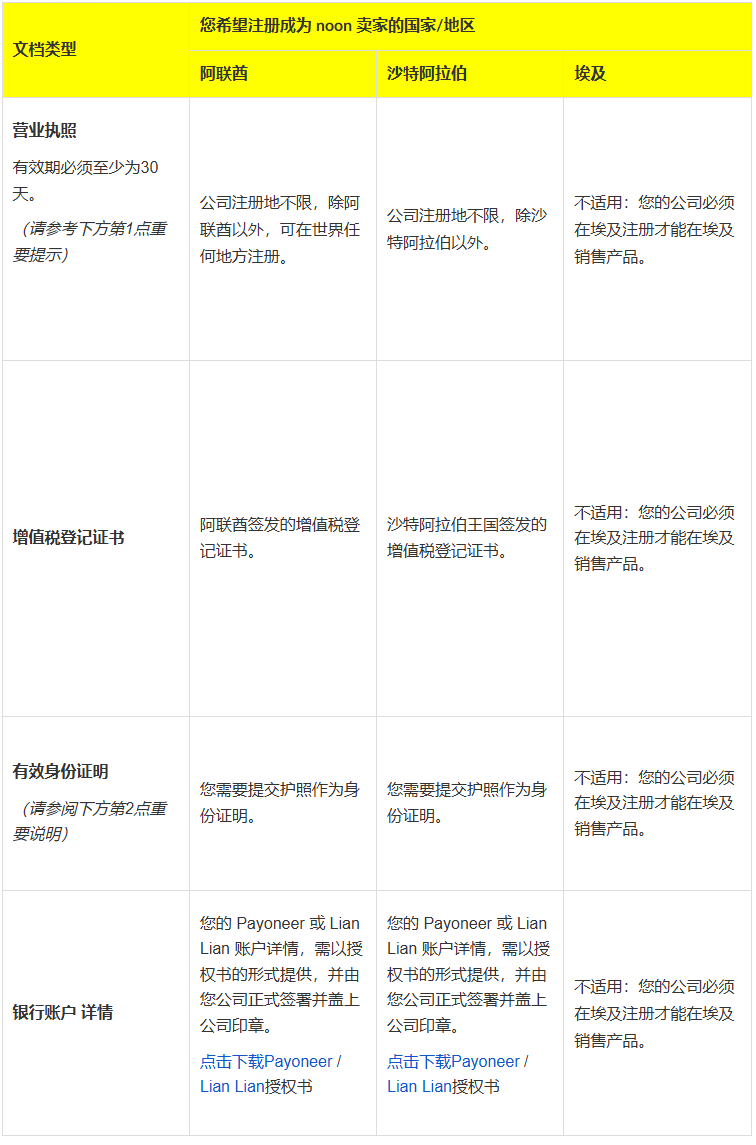 要想在 Noon 平台销售商品,您的营业执照必须授权您从事贸易、销售或制造活动。此外,电子商务执照也可接受。但是,仅限于提供服务的执照不被接受。
