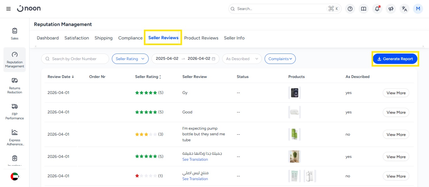 从声誉管理控制面板中选择“卖家评价” ,然后选择您想要的日期范围。