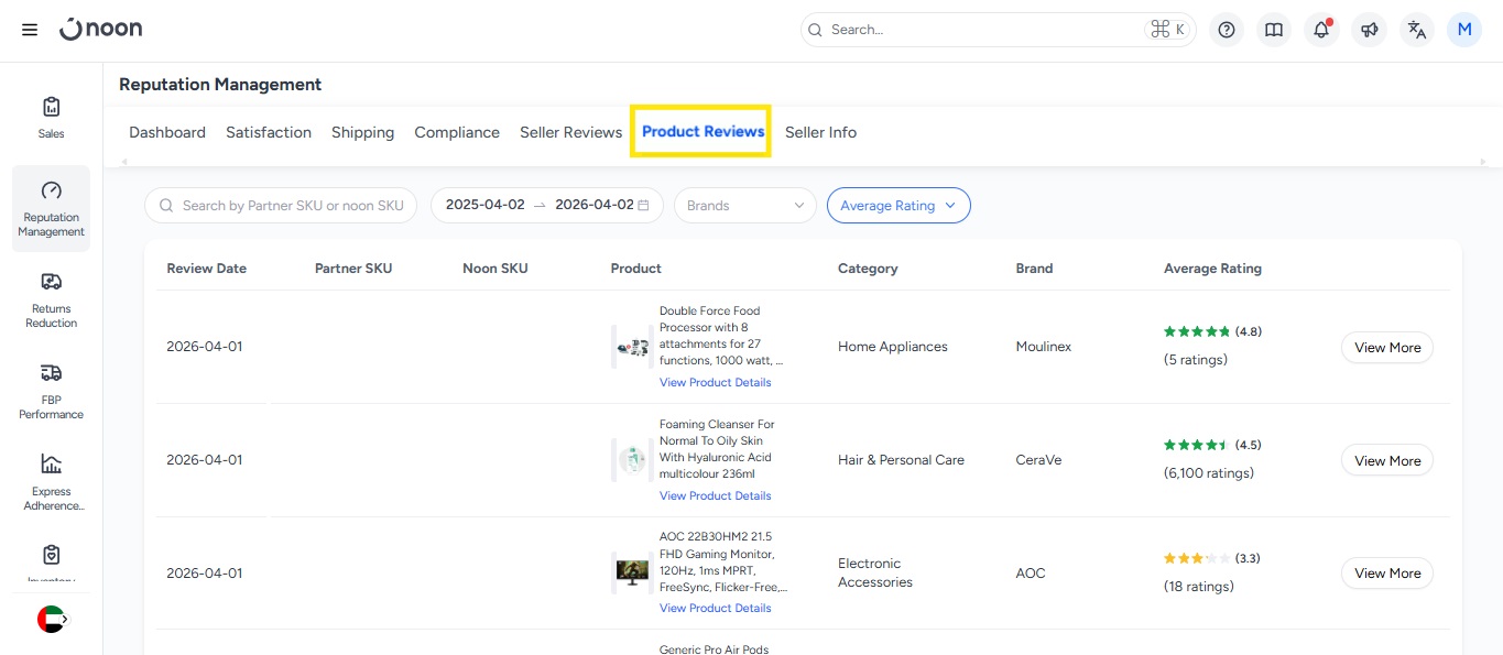 从声誉管理控制面板中选择“产品评论” ,然后选择您想要的日期范围。
