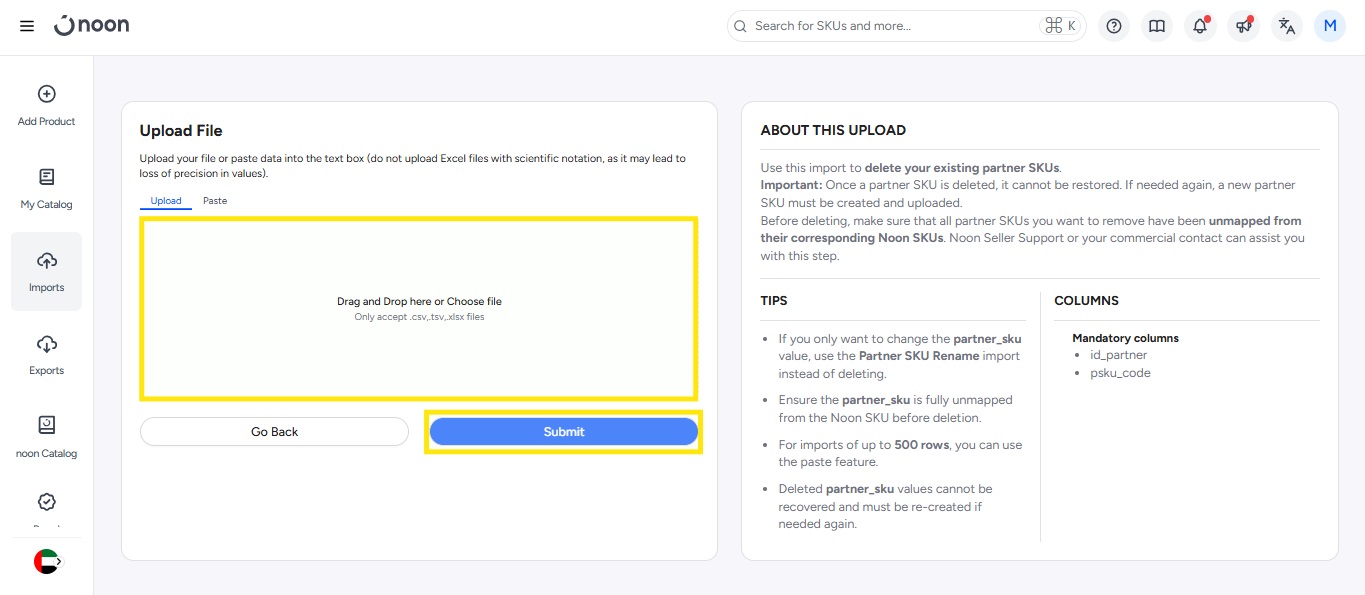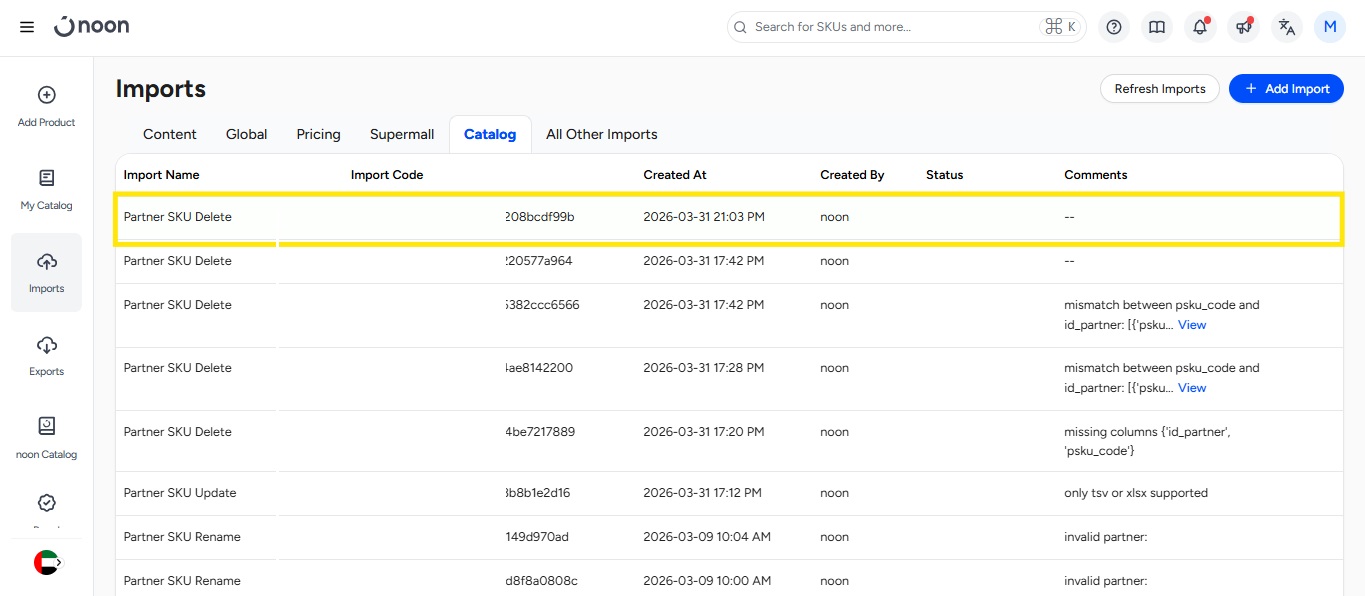 - 然后您可以在导入页面跟踪导入状态。一旦处理完成,则表示您删除的所有 PSKU 都将从卖家实验室中移除。
