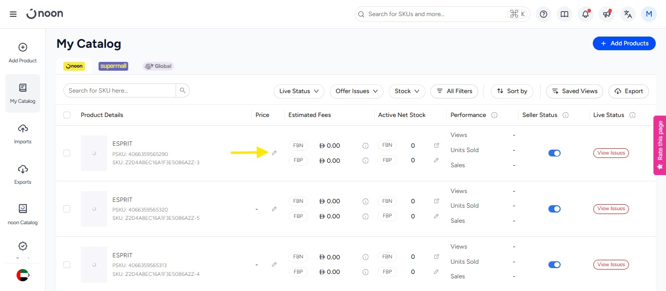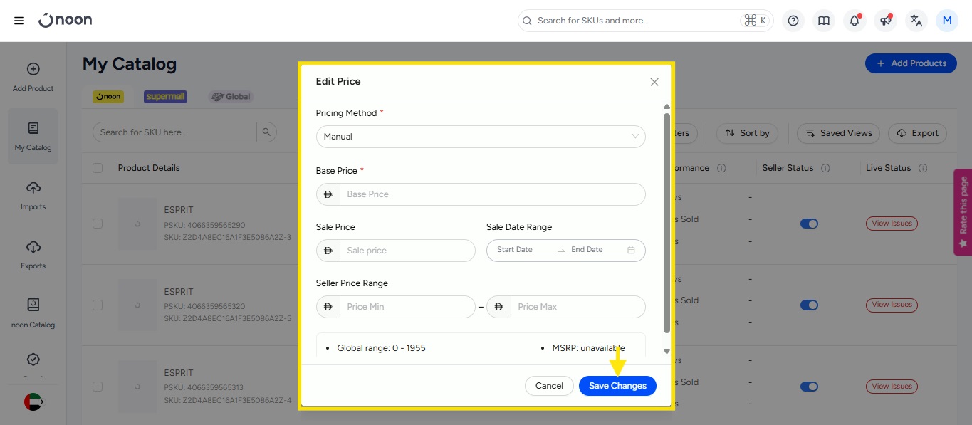 - 点击“价格”列下的“编辑”按钮。屏幕上会弹出一个窗口,您可以在其中更改和更新价格详情。