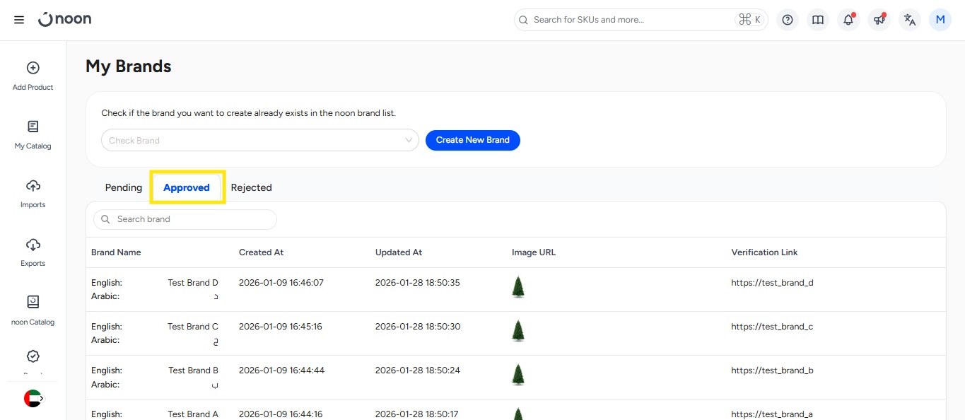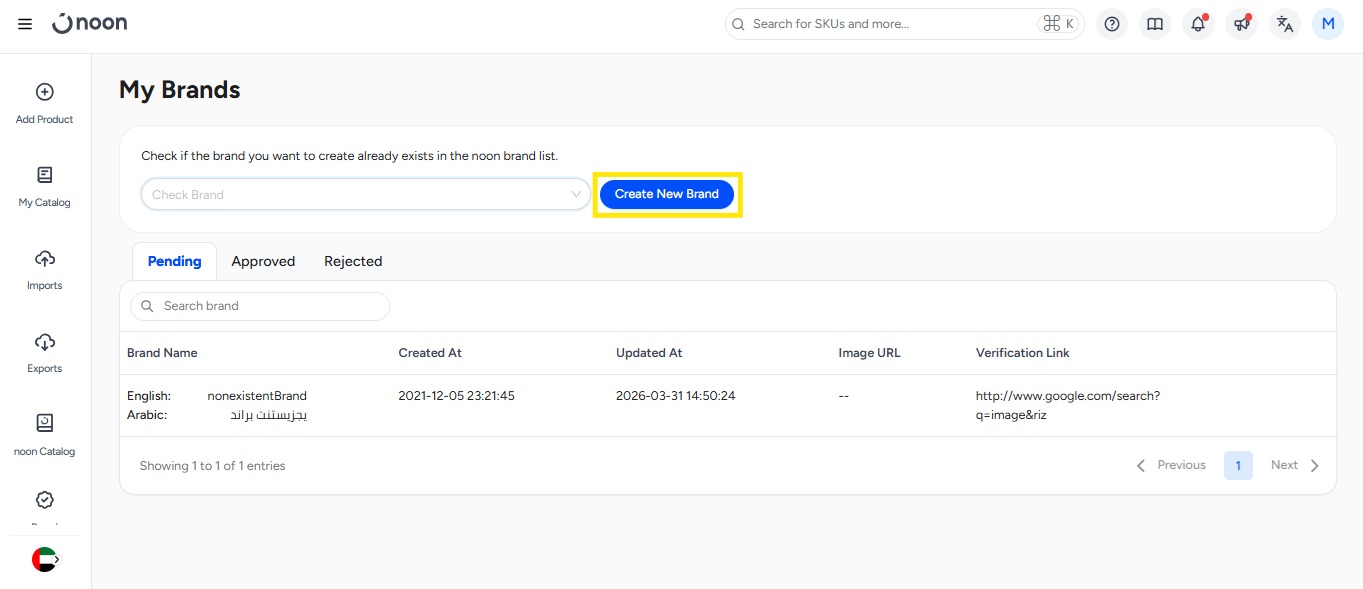 这 将打开一个弹出窗口。请填写必填字段并点击“创建”。您的申请将发送给 Noon 团队进行审批。现在您可以开始创建带有您申请品牌的产品。这些产品在 Noon 团队批准品牌之前不会上线。他们将审核您提供的信息并做出决定。如果他们需要更多信息,他们会通过电子邮件与您联系。
