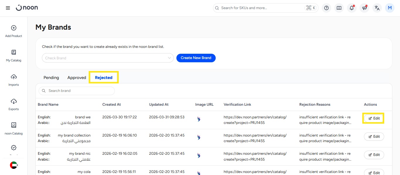 如果您的品牌申请被拒绝- 您将在品牌管理屏幕的“已拒绝”