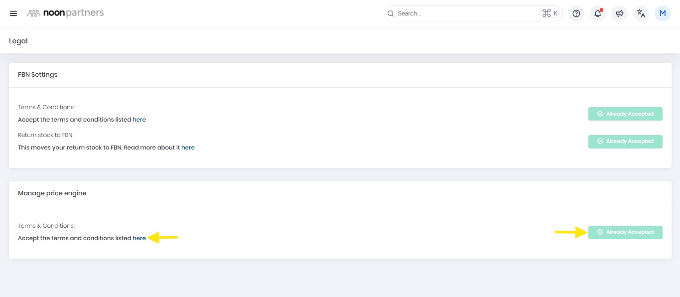 要激活价格引擎,您需要确保按照以下步骤在卖家实验室中接受条款和条件。