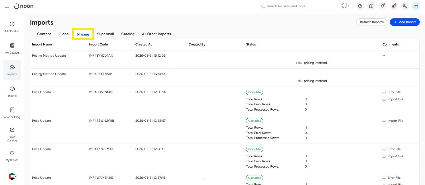文件上传成功后,即可在“导入” 部分查看。该部分会显示文件状态,包括成功、失败或部分失败。