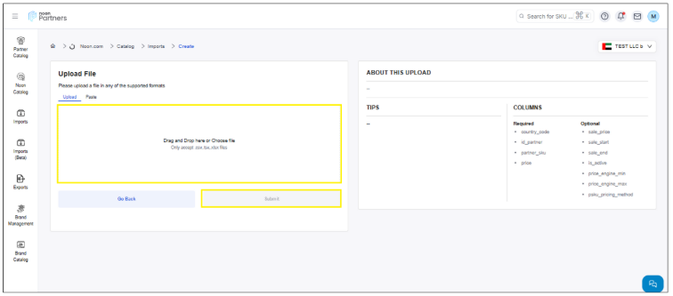 -上传或粘贴表格,然后点击“提交”批量上传 SKU 的价格。