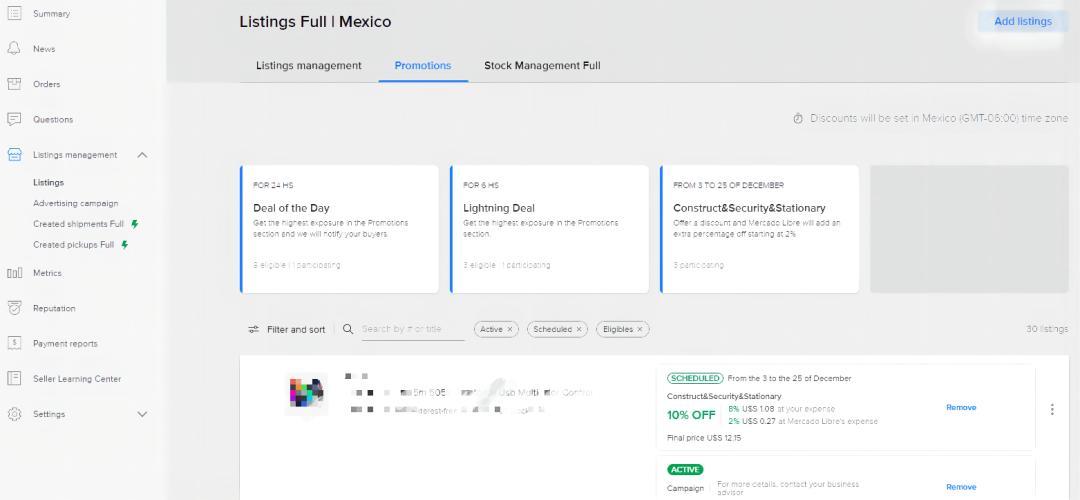 登录卖家后台,按照以下路径找到推荐参加促销活动的Listing:Listing management Listings Promotions