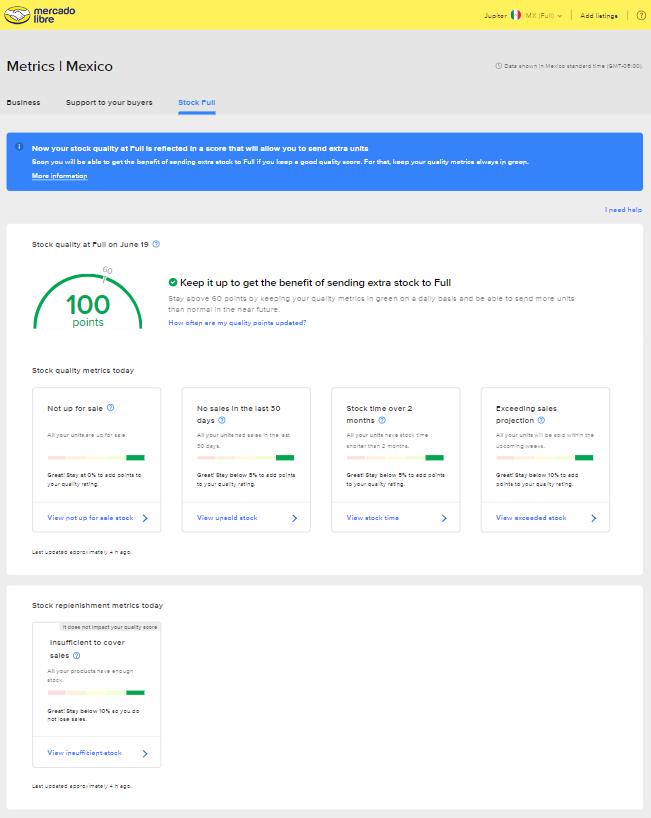 IPI 分数仅针对使用美客多海外仓的卖家进行考核,FBM卖家请登录卖家后台,按照以下步骤即可查看您当前的 IPI 分数: