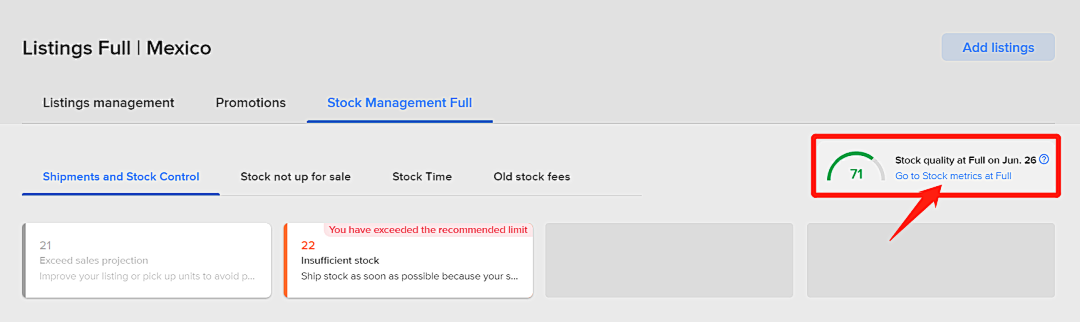 1、选定【Listings】> 【Listings management】> 【Stock Management Full】 ;
