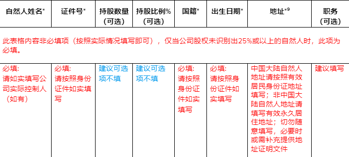 此表非必填项,仅当公司股权未识别出25%或以上的自然人时,此项为必填。