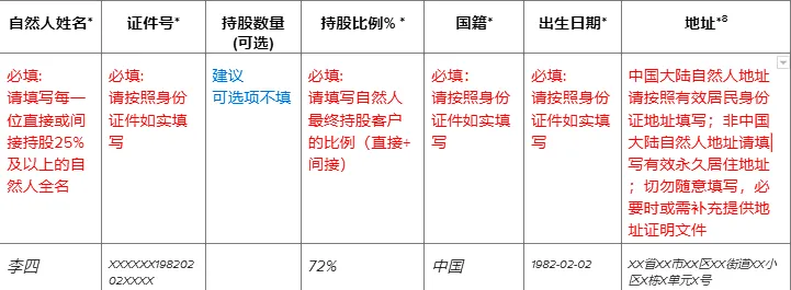图例股权中只有李四最终持股25%,因此只需填写李四的具体信息。