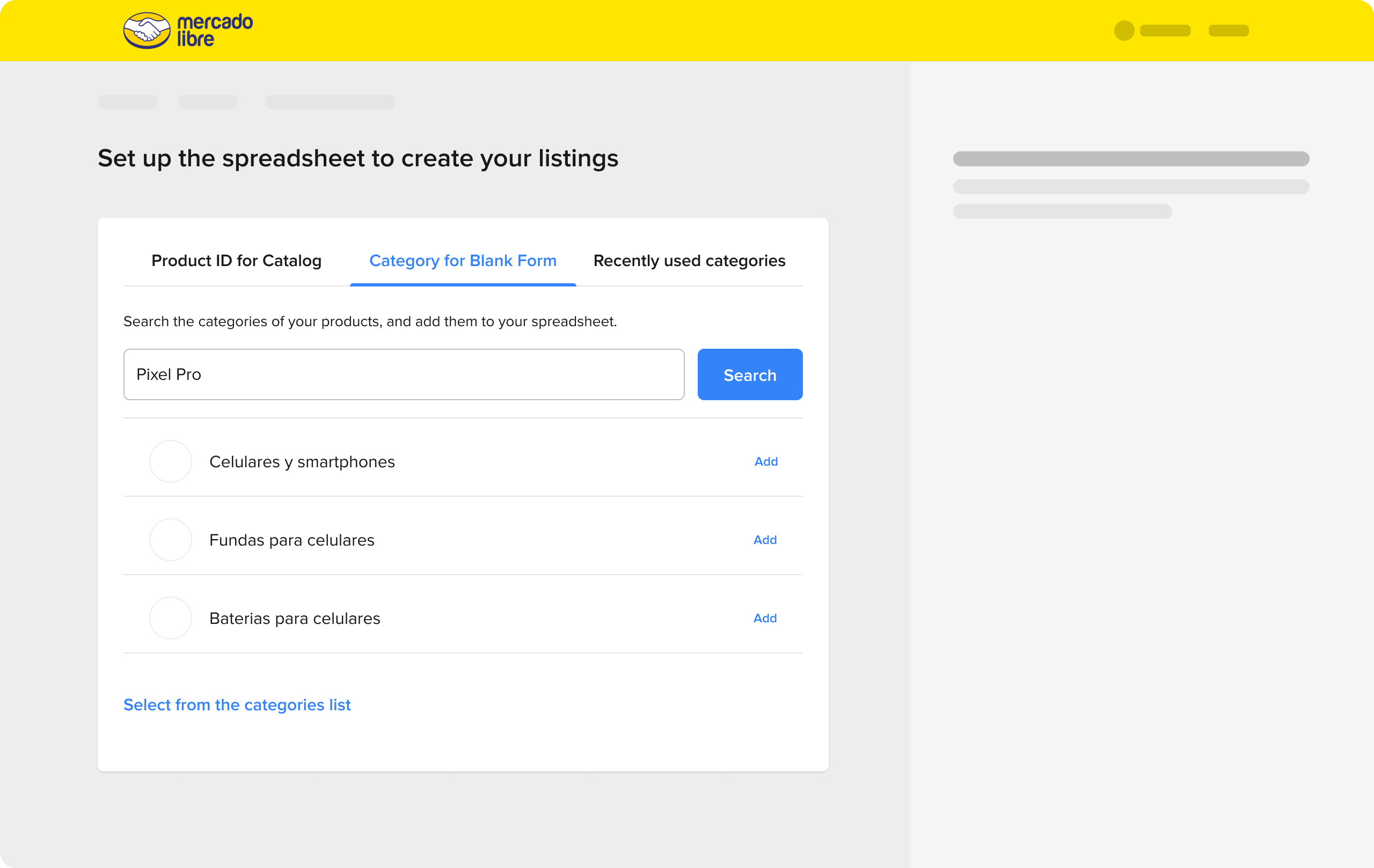 - 如果您想将商品发布到其他类别,可以从“空白表单类别”中进行操作。您需要在搜索栏中输入要发布的商品类别名称,例如:微波炉、运动鞋、电子游戏等。