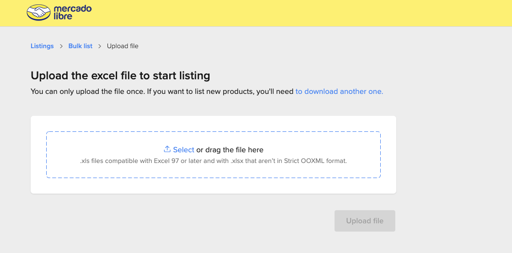 完成电子表格后,您需要将其再次上传到 Mercado Libre。为此,有两种方法: