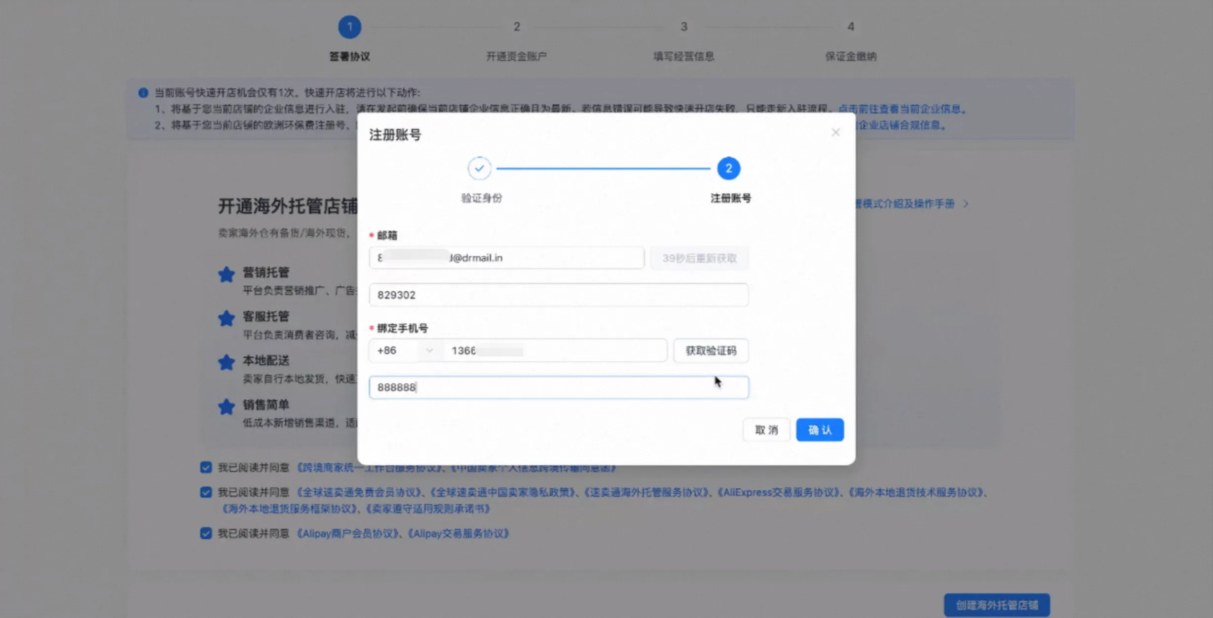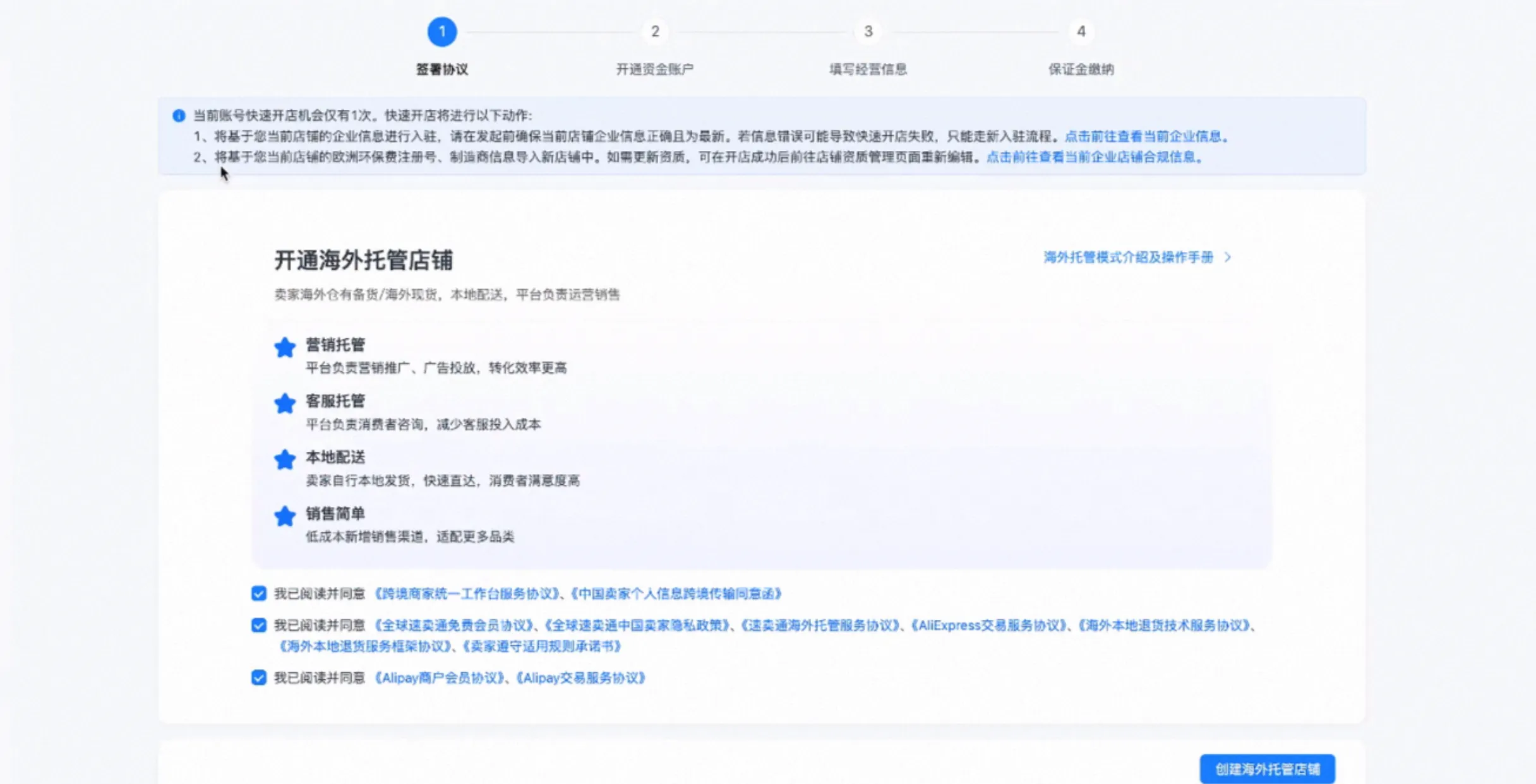 3、开通海外托管店铺,签署协议