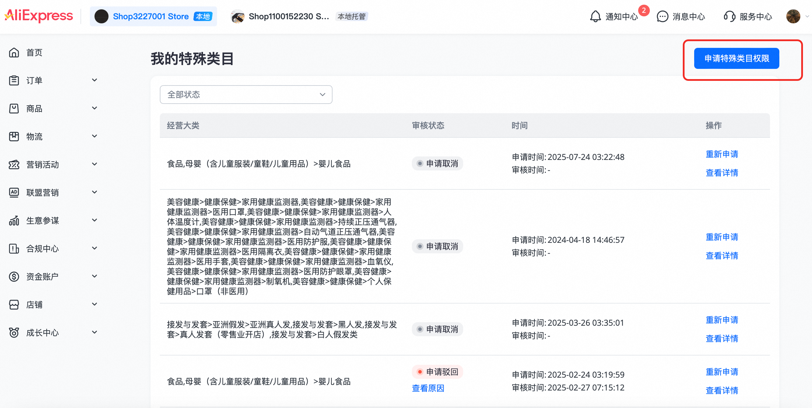 速卖通海外托管店铺在哪里申请特殊类目权限?