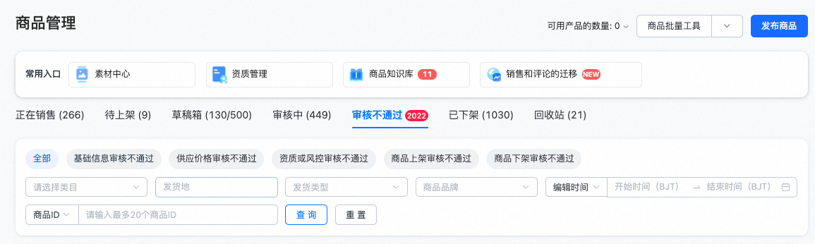 ●商品审核:提交成功商品会经过信息审核、价格审核、商品资质&合规审核,审核通过后可正常发布售卖