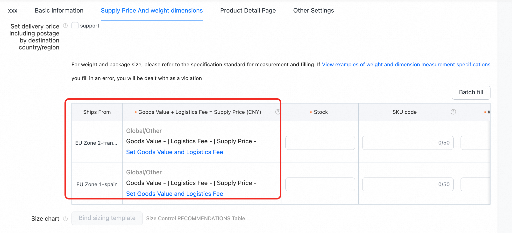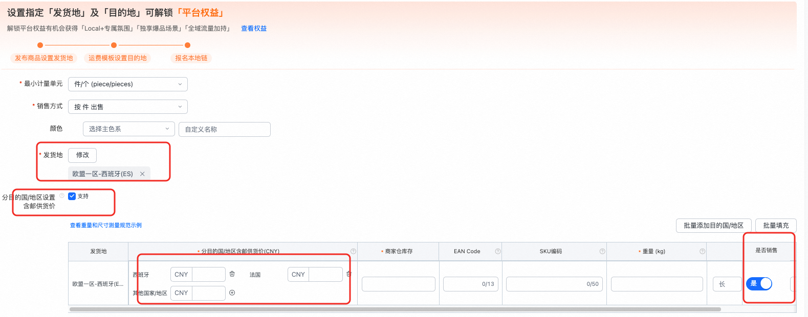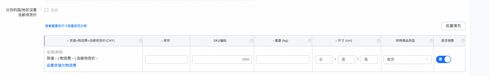 ●支持按目的国报价:若勾选此项,商家可针对不同目的国分别报出供货价(含运费)。(平台即将优化报价功能,以支持将供货价与物流费拆分报价)。