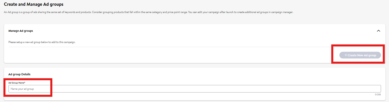 要创建多个广告组,您必须首先保存广告活动。这将启用创建新广告组按钮。