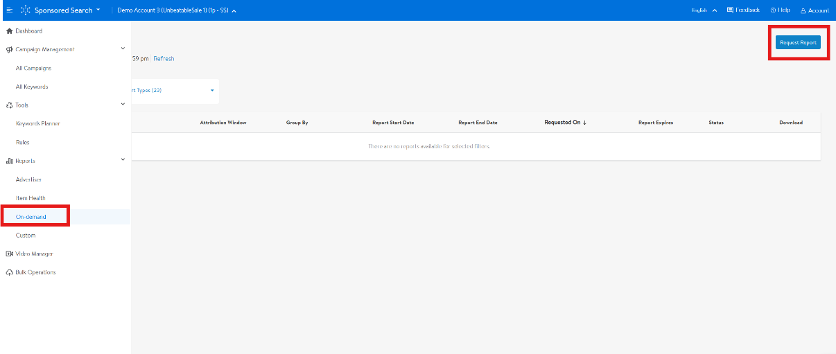b.下载方式:如图,您可以在广告后台Reports>On-demand中下载各类效果报告。
