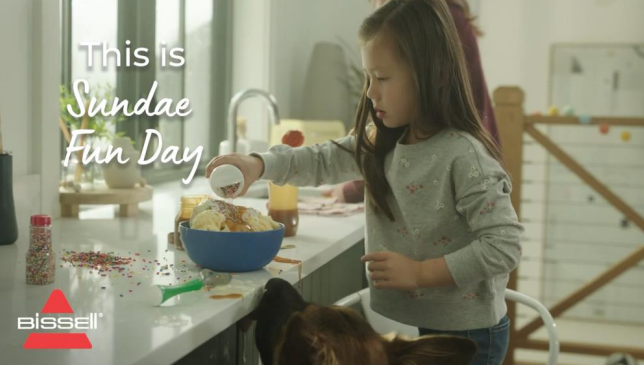 展示与有孩家庭相关的场景以及 Bissell品牌 如何轻松解决问题,快速引起顾客注意力。在视频结尾传达反馈信息,进一步促使顾客点击视频。