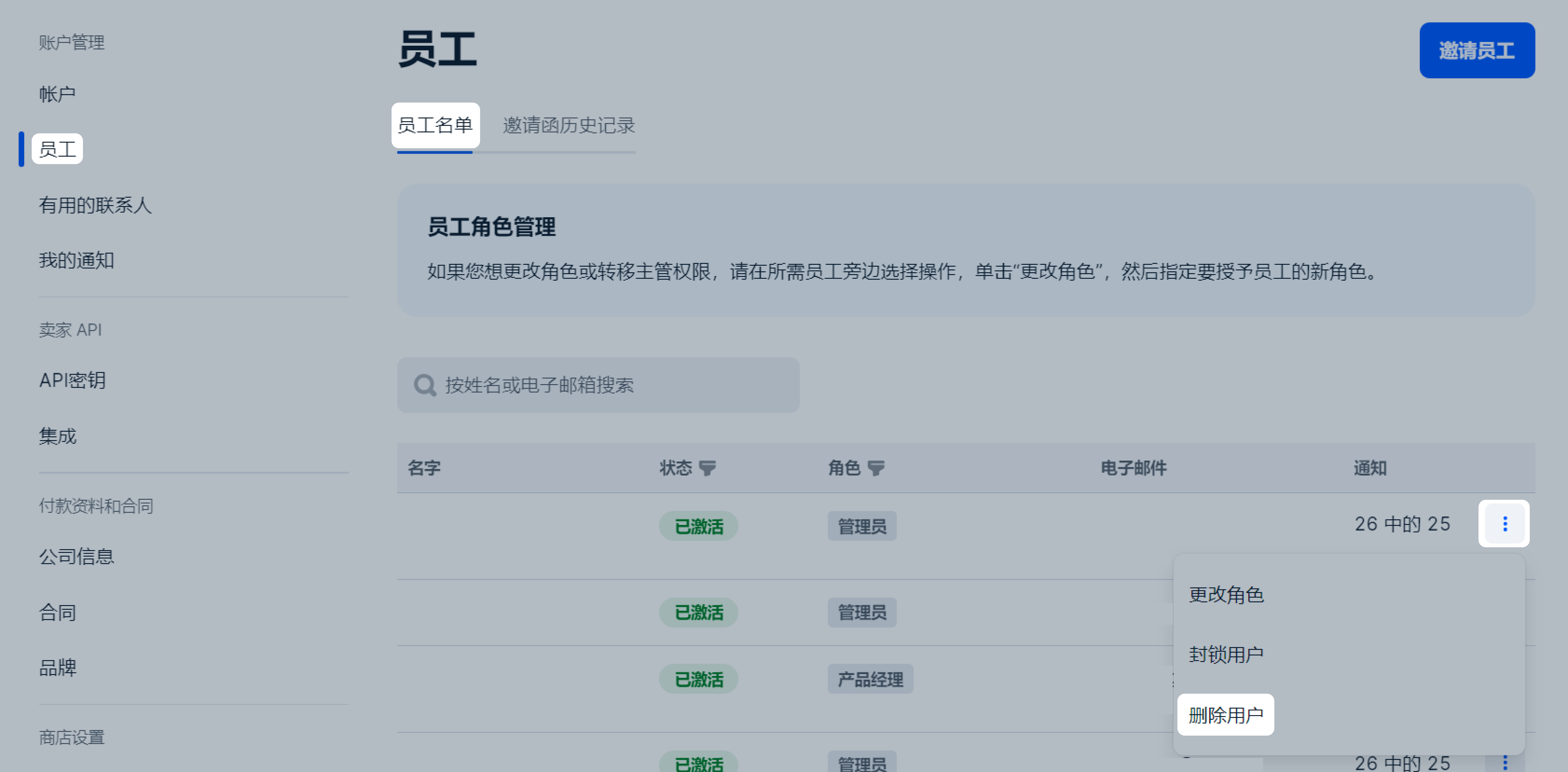 Ozon怎么删除员工账户?