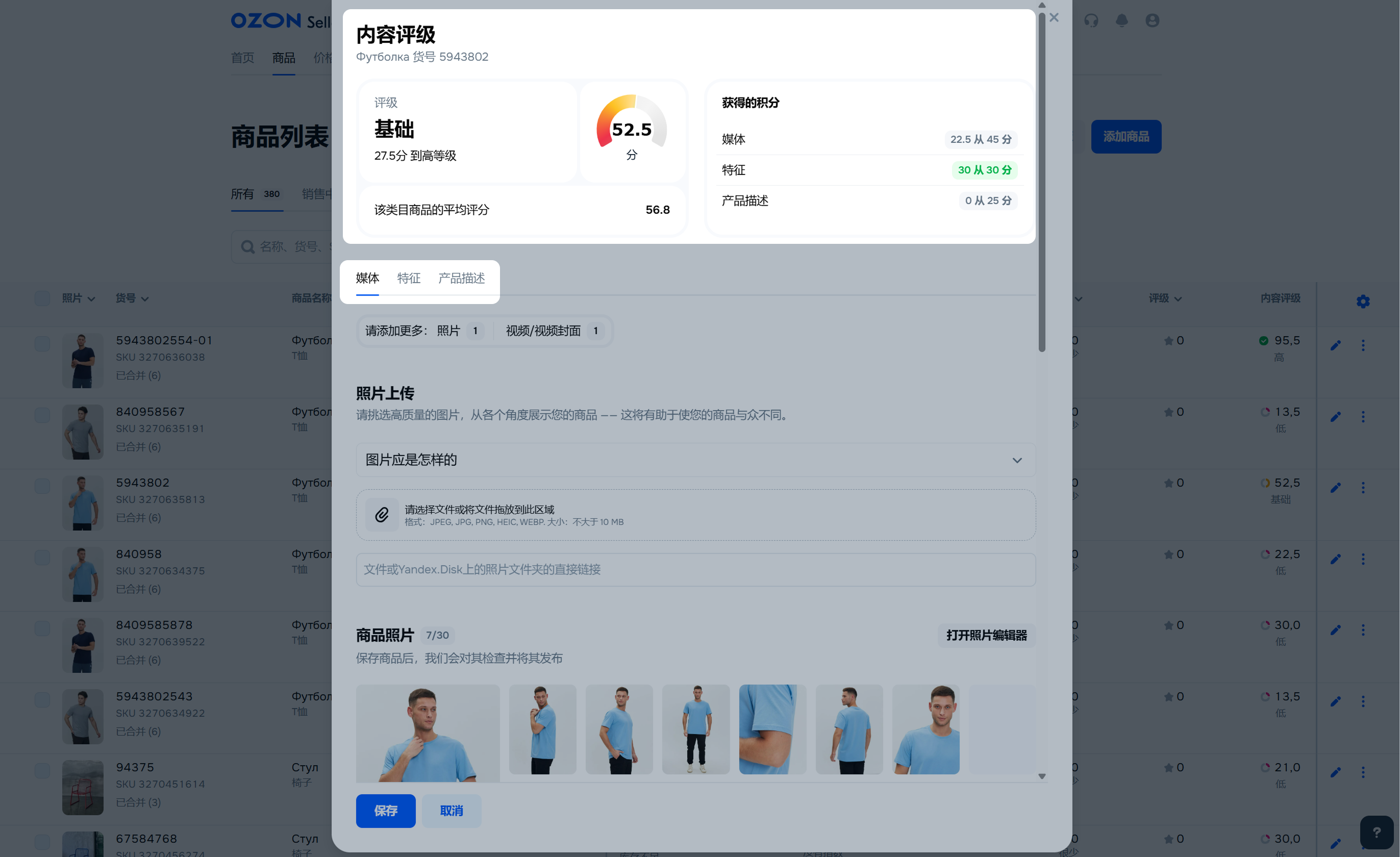 当您补全所有信息后,点击保存——商品卡片将被提交审核。若审核通过,内容评级将会更新。