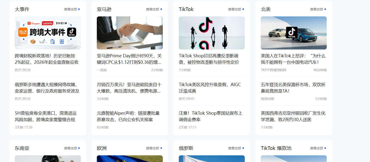 出海网平台上的“跨境资讯”板块聚焦跨境电商全领域,内容全面、更新极速,第一时间同步行业关键信息。