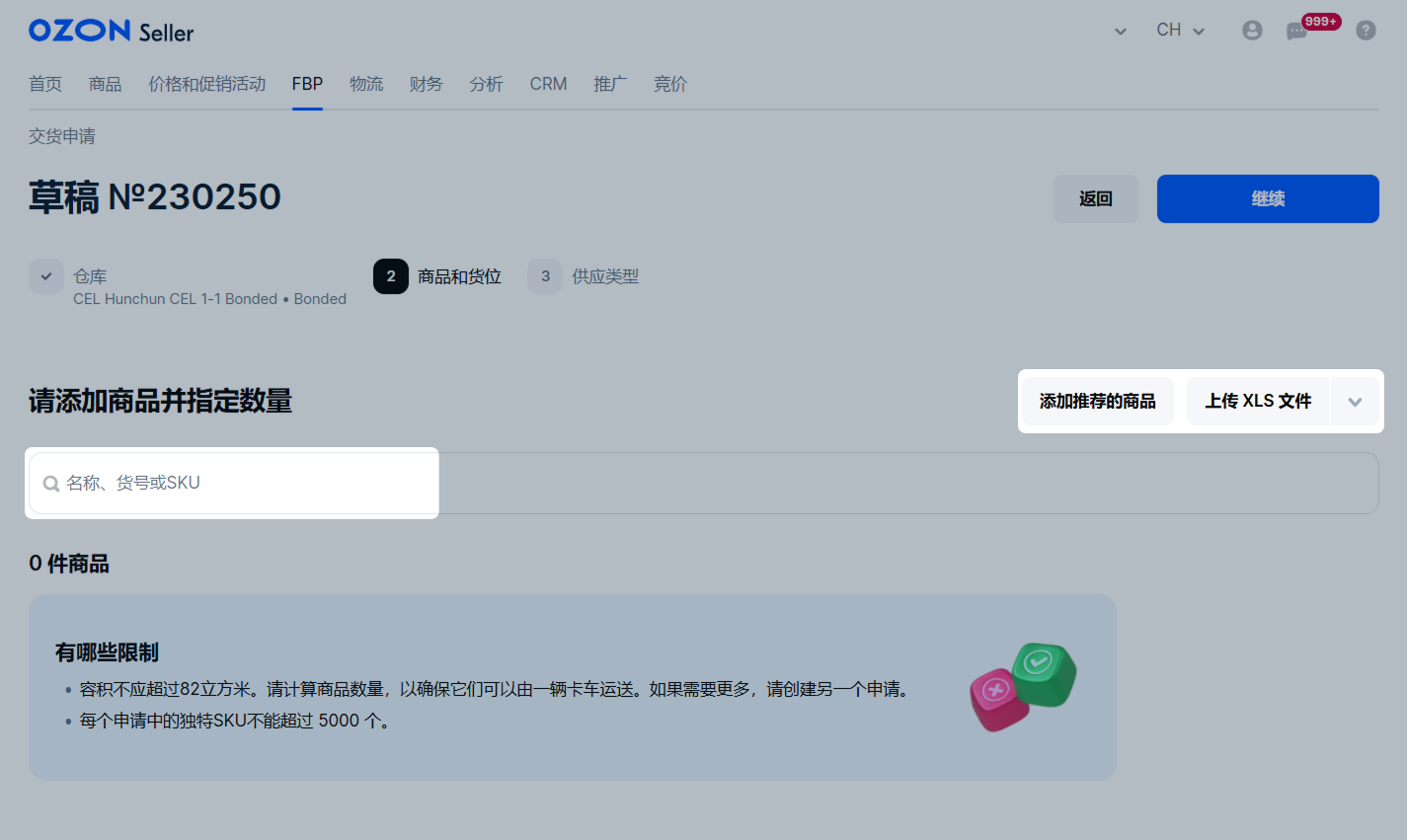 在FBP → 创建交货请求页面中的仓库选择步骤,现会为每个仓库和配送服务显示配送至莫斯科买家的平均送达时间。您此前创建过交货的仓库将显示在列表顶部。