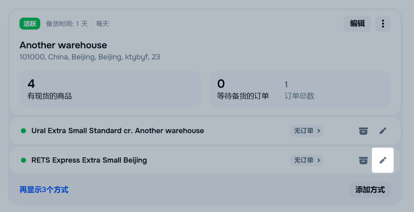 → 物流管理模块,点击配送方式旁的编辑标记。