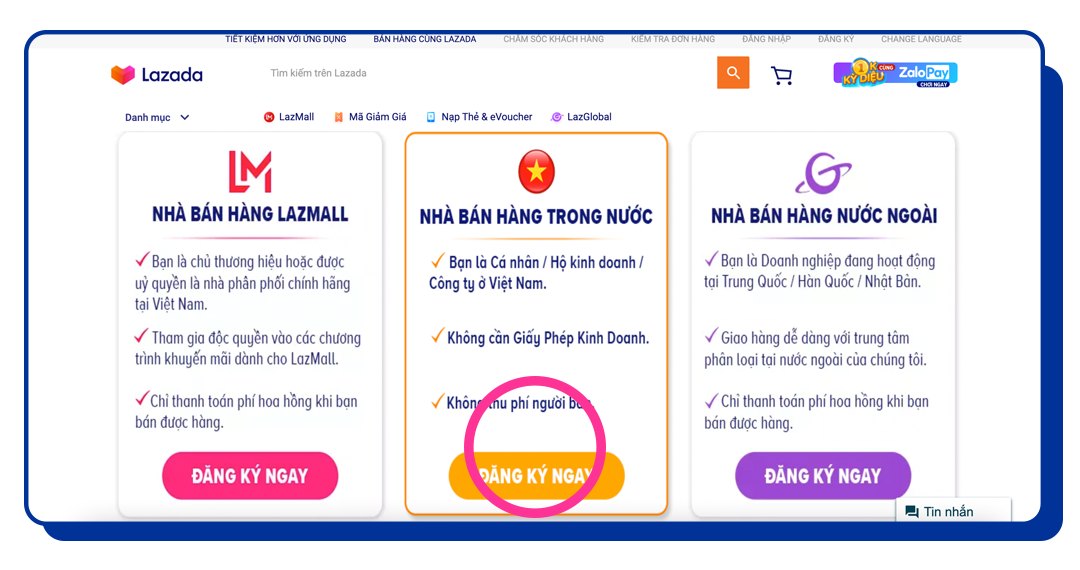 以越南为例(其他类似),在谷歌浏览器输入Lazada.vn进入网页,点击Sell On Lazada