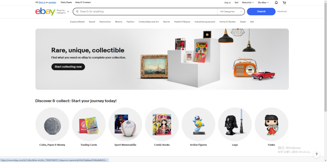 登录www.ebay.com.hk,点击左上角“注册”注册eBay帐号。